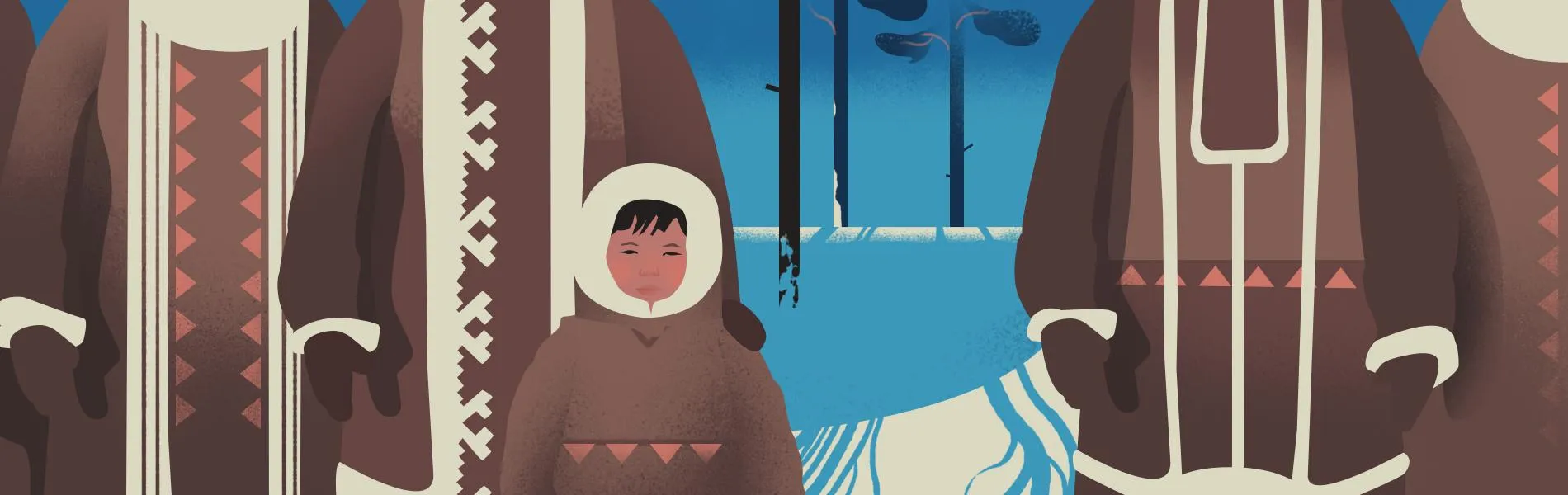 Жилища (дома, чумы), следы (людей, оленей, зверей) прикрыл снег.